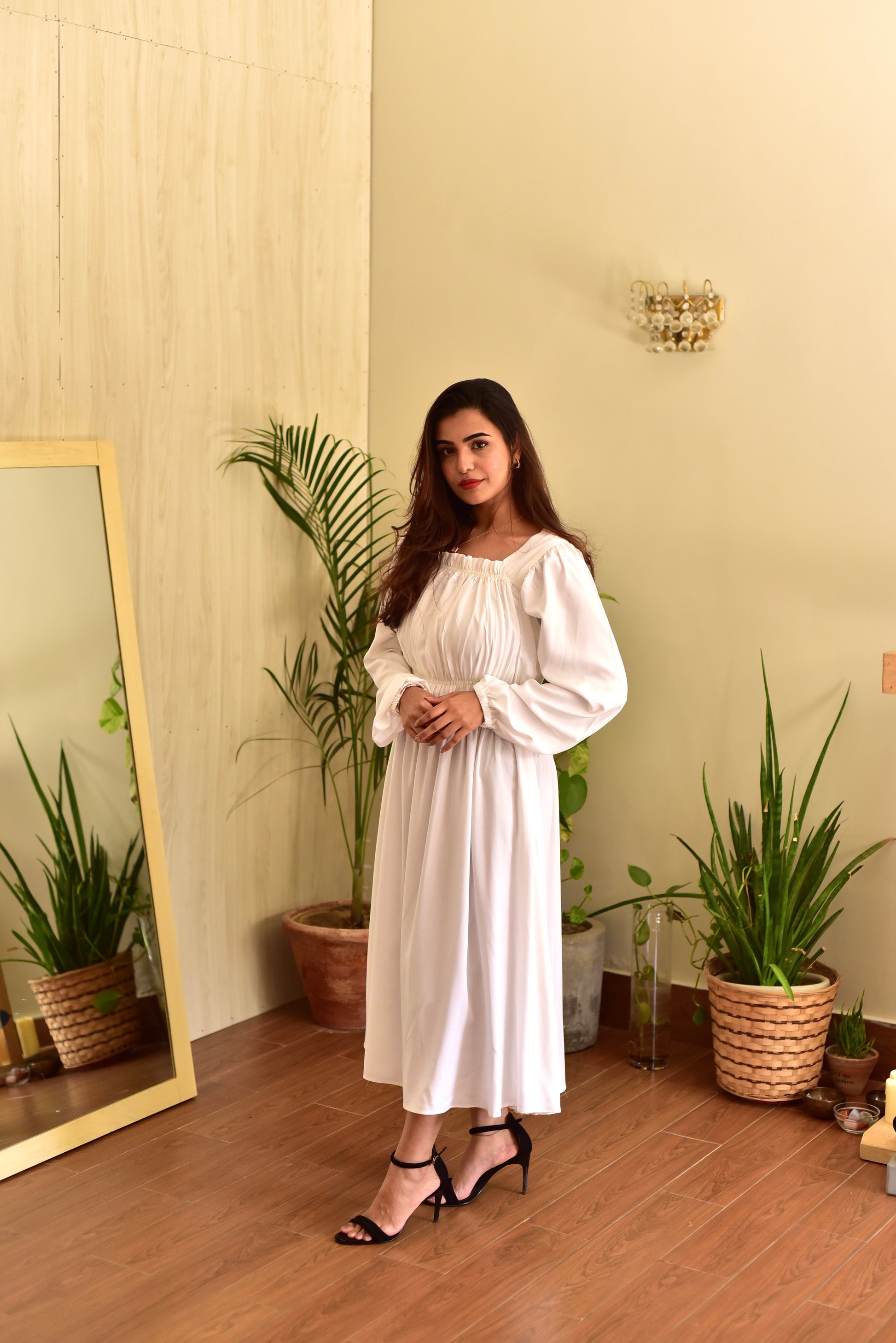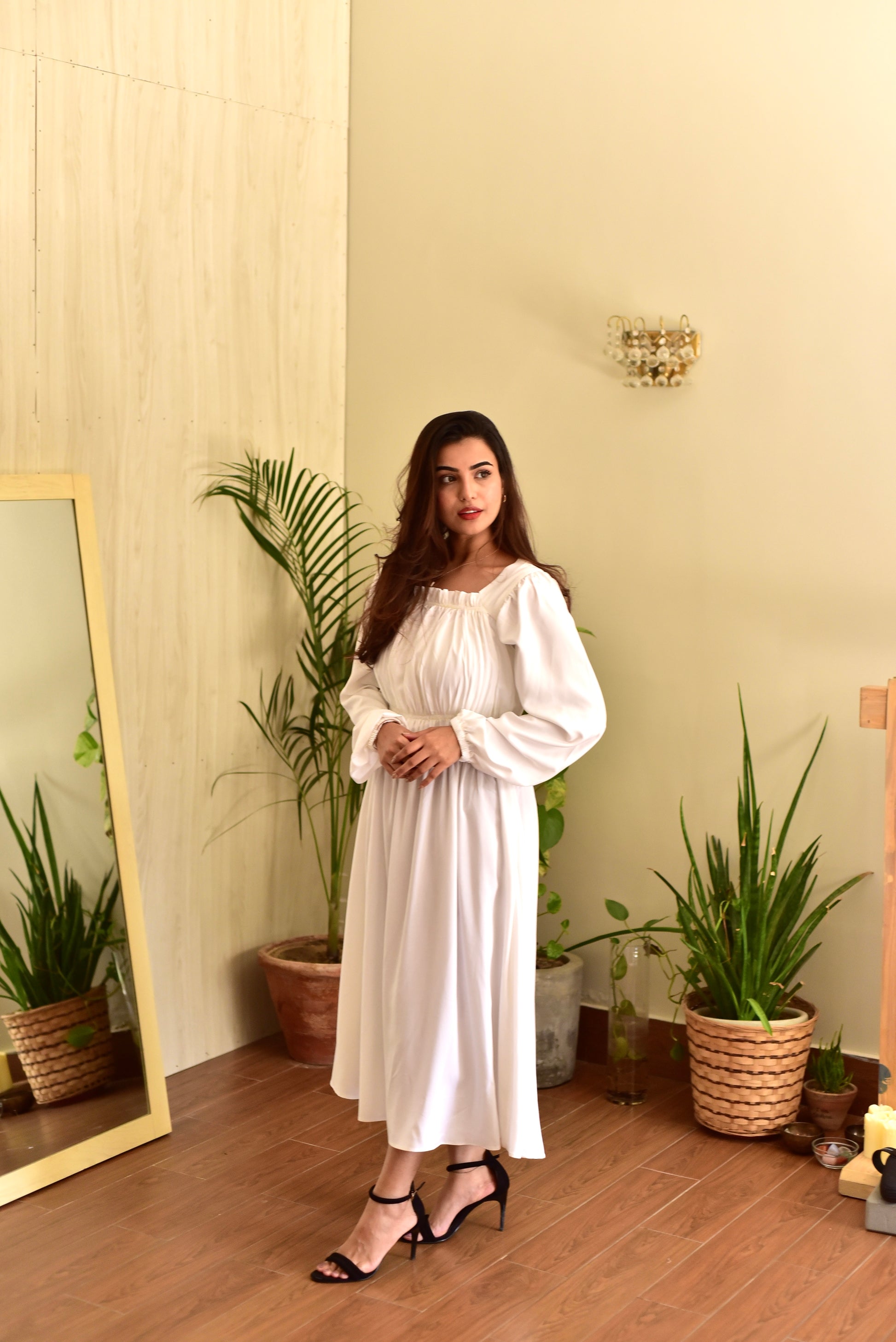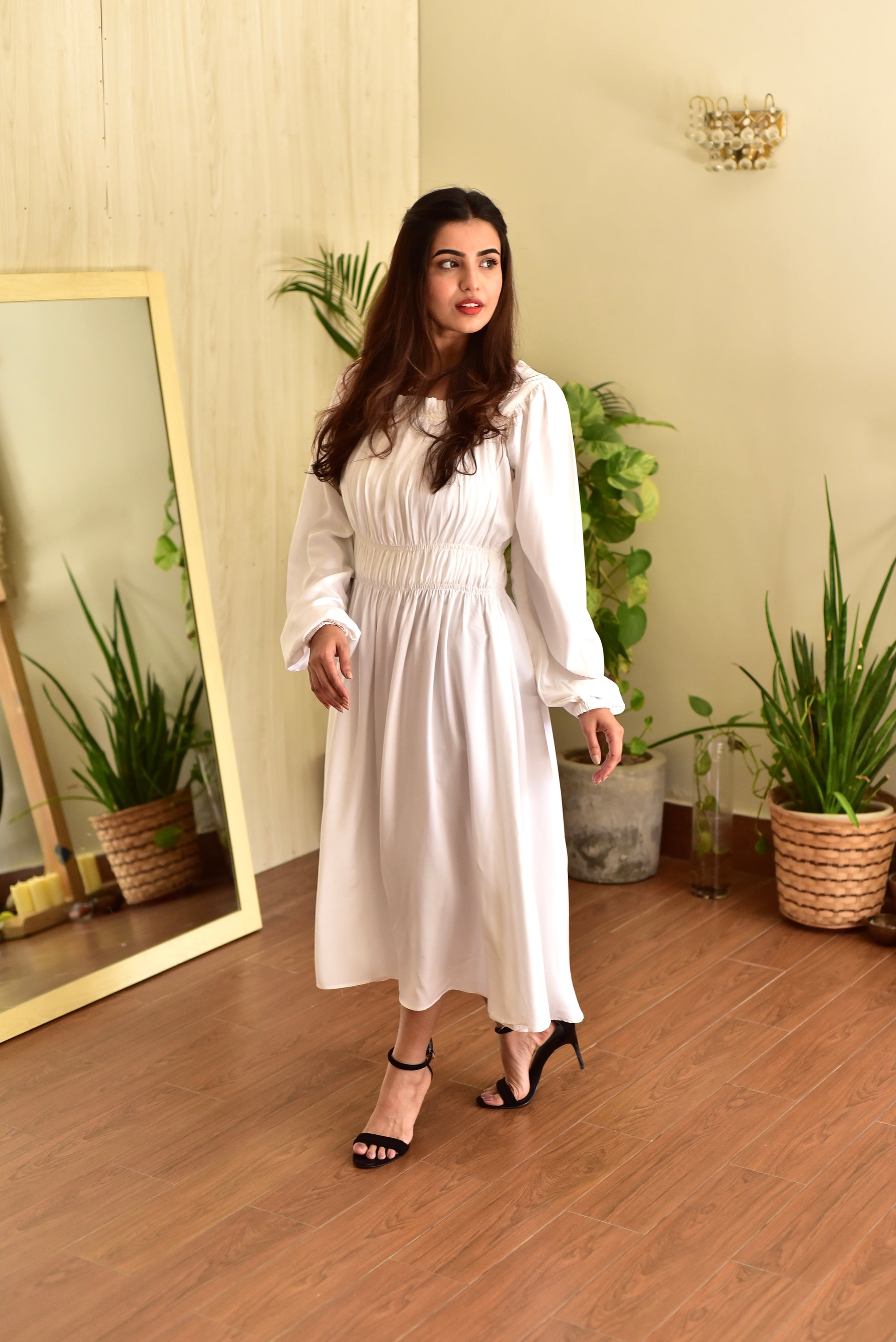 Panel dress made out of soft, linen fabric with elasticized detail.